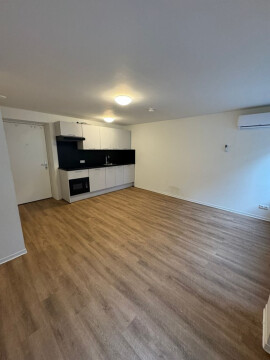 Bij binnenkomst kom je direct in de studio, die bestaat uit een woonkamer en open keuken. De keuken is volledig uitgerust met moderne gemakken, zoals een inductiekookplaat, afzuigkap en meer. De badkamer is keurig afgewerkt en van alle gemakken voorzien.