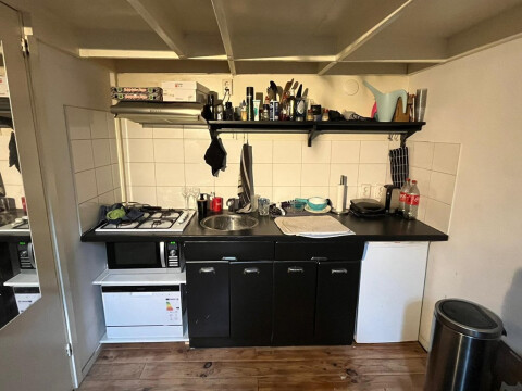 Bij binnenkomst stap je direct de lichte woonkamer met open keuken binnen. Daarnaast heb je een eigen badkamer die keurig is afgewerkt en van alle gemakken voorzien, met een inloopdouche, toilet en wastafel. De studio heeft een praktische indeling en biedt genoeg ruimte voor zowel een zithoek als een slaapgedeelte.