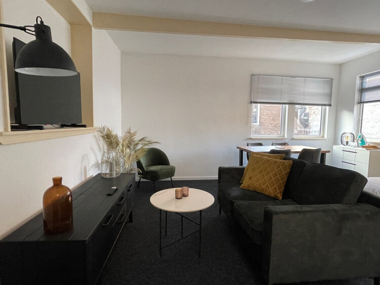 Bij binnenkomst kom je in de lichte woonkamer met een open keuken, compleet uitgerust met een inductiekookplaat, koelkast, combi-oven/magnetron en afzuigkap. Daarnaast beschikt de badkamer over een toilet, douche en wastafel. Twee van de studio's hebben een aparte slaapkamer en de overige hebben dit niet. Verder worden de studio's gemeubileerd opgeleverd. De eerste vijf afbeeldingen zijn van de studio zonder aparte slaapkamer en de overige afbeeldingen van de studio met aparte slaapkamer.