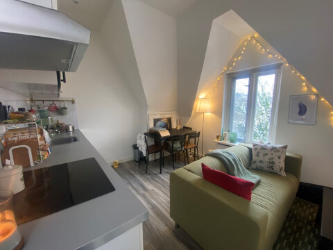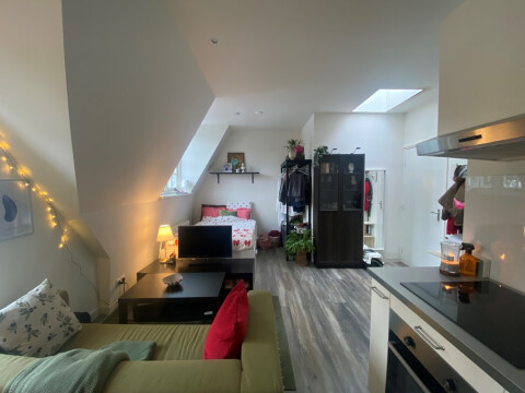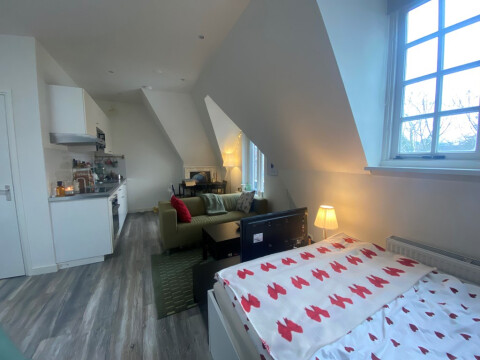 De studio beschikt over een lichte woonkamer/slaapkamer. Verder is er een moderne keuken die volledig uitgerust is met een inductiekookplaat, koelkast, vaatwasser, oven/magnetron en afzuigkap. De badkamer en wc zijn keurig afgewerkt en van alle gemakken voorzien.
