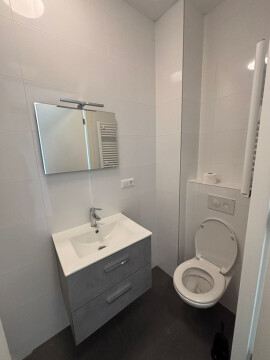 Wipstraat 1E (studio) (Foto 24 t/m 26) bevindt zich op de tweede verdieping grond en heeft een totale woonoppervlakte van 27,04m2. je komt binnen via de gemeenschappelijke hal, die toegang geeft tot alle zes de appartementen/studio's in het pand. Vanuit de hal stap je direct de woonkamer binnen met een open keuken. De keuken is voorzien van een afzuigkap, koelkast, inductiekookplaat, combi-oven en vaatwasser. De badkamer is uitgerust met een toilet, douche en wastafel.