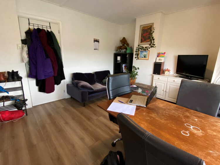De studio heeft een ruime woonkamer met een aparte keuken waarin zich ook de douche bevindt. Tevens is er nog een aparte slaapkamer aanwezig. Het toilet wordt gedeeld met één andere huurder.