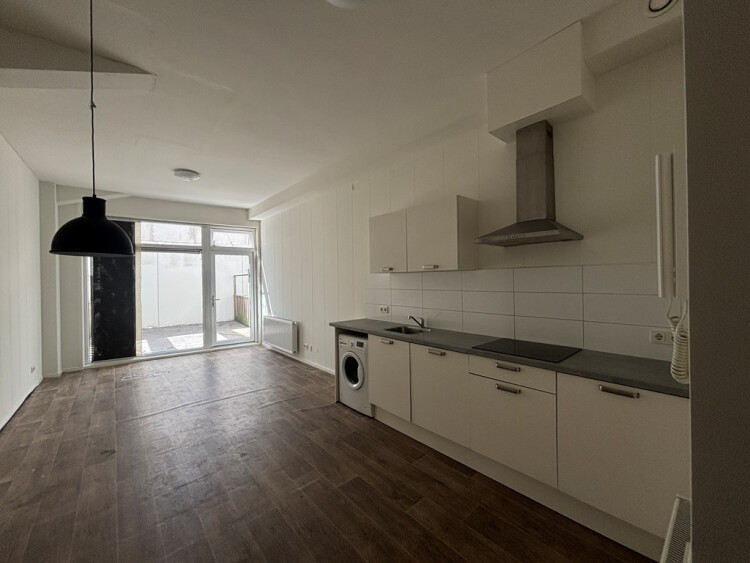 Bij binnenkomst stap je direct de studio binnen, die is ingedeeld met een woonkamer met open keuken en een slaapgedeelte. De keuken is van alle moderne gemakken voorzien, waaronder een inductiekookplaat, vaatwasser en afzuigkap. De badkamer is uitgerust met een douche, toilet en wastafel. Daarnaast beschikt de studio over een achtertuin.