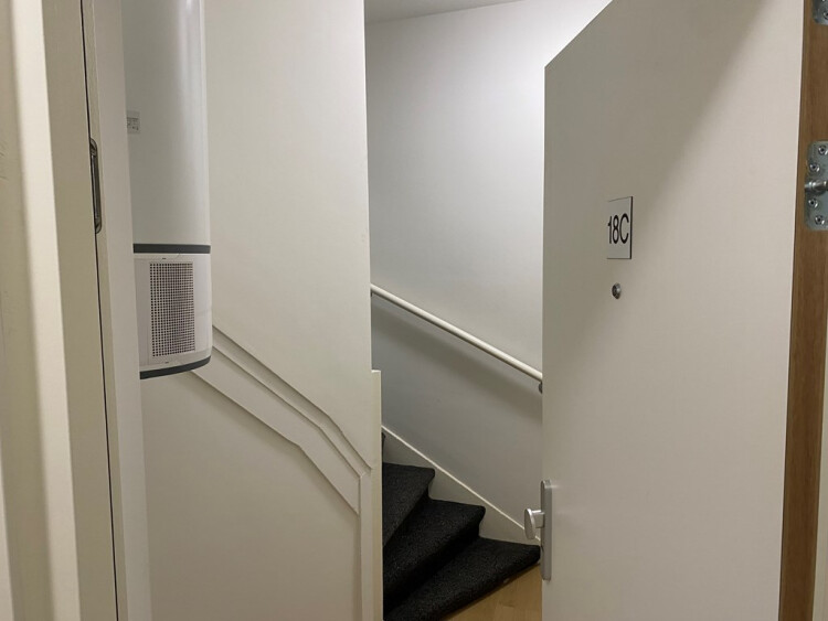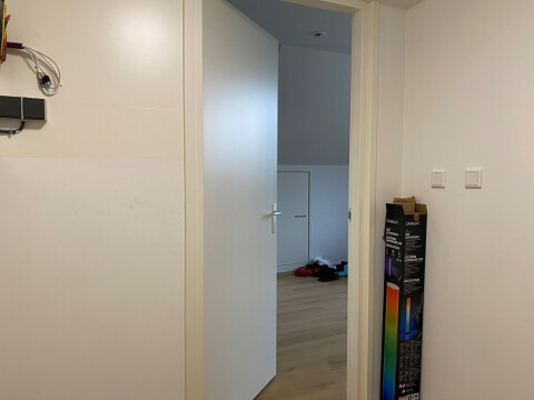 Bij binnenkomst is er beneden een hal met de trap naar boven. Hier kom je in een hal waar het toilet zich bevindt. Het appartement zelf bestaat uit een ruime woonkamer met open keuken. De keuken is volledig uitgerust met moderne gemakken, zoals een inductiekookplaat, vaatwasser, afzuigkap en meer. In de naastgelegen kamer bevindt zich de slaapkamer met open badkamer. De badkamer beschikt over een ruime douche.