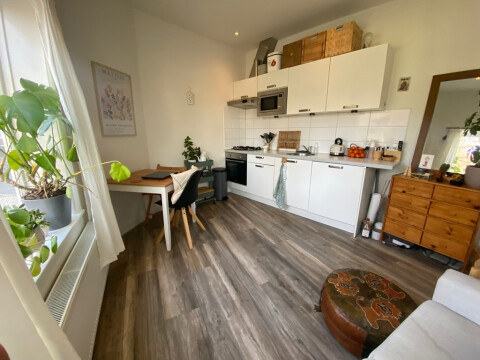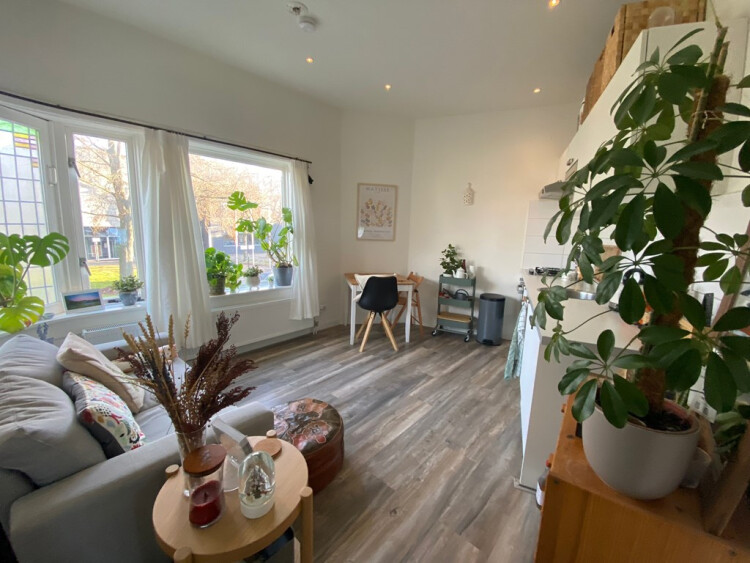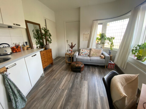 De studio beschikt over een lichte woonkamer met een open keuken. De moderne keuken is volledig uitgerust met een gaskookplaat, koelkast, oven/magnetron en afzuigkap. De badkamer en het toilet zijn netjes afgewerkt en voorzien van alle gemakken. Daarnaast is er een aparte slaapkamer van ongeveer 5,5 m² aanwezig.